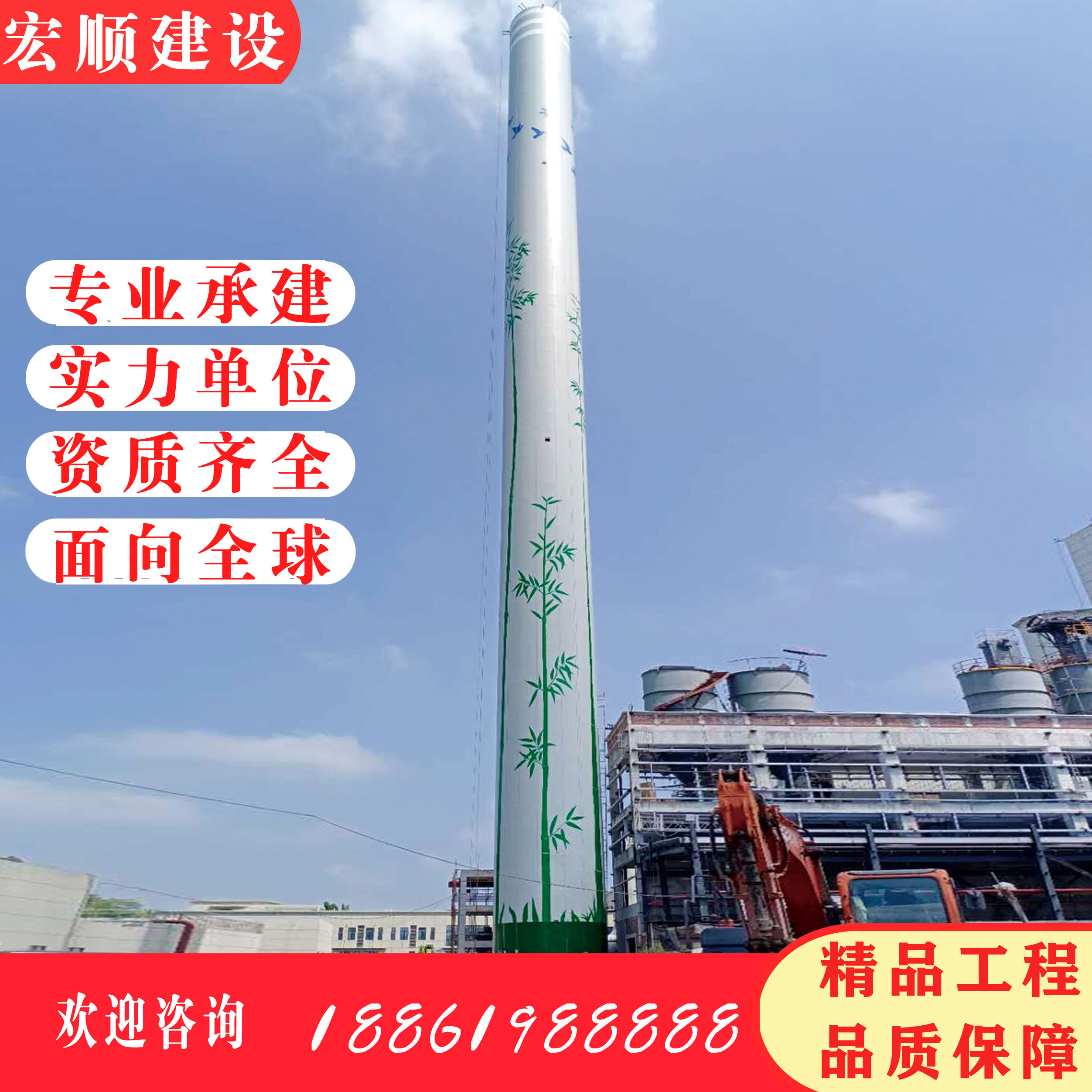煙囪安裝爬梯(煙囪刷油漆)工程。本工程煙囪為傳統(tǒng)的單筒式錐形鋼筋混凝土煙囪,煙囪高度100m,原內(nèi)襯采用耐酸膠泥砌筑耐火磚,原隔熱層采用憎水性珍珠巖板。為適用脫硫濕煙氣的使用條件,必須對(duì)其內(nèi)壁進(jìn)行防腐處理。煙囪內(nèi)壁高壓水槍沖洗,煙囪內(nèi)壁聚合物砂漿修補(bǔ)找平,采用硅寶102封閉底涂+硅寶877耐酸耐溫粘結(jié)劑+輕質(zhì)CLT-Ⅱ?;沾纱u組成的隔膜防腐系統(tǒng)進(jìn)行防腐。本工程工期為50天。